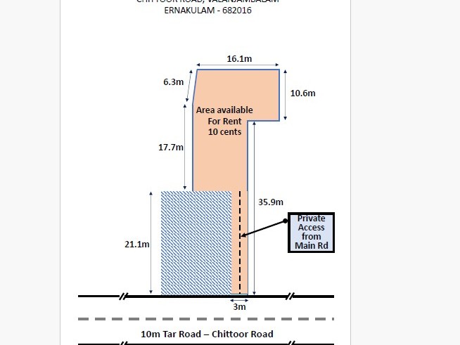 The land is right on Chittoor Road, one of the busiest and most prominent commercial corridors in Ernakulam. With private exclusive access from the main road and a 10-meter-wide tar road frontage, the property ensures smooth movement for both customers and transport vehicles, making it ideal for various commercial applications.